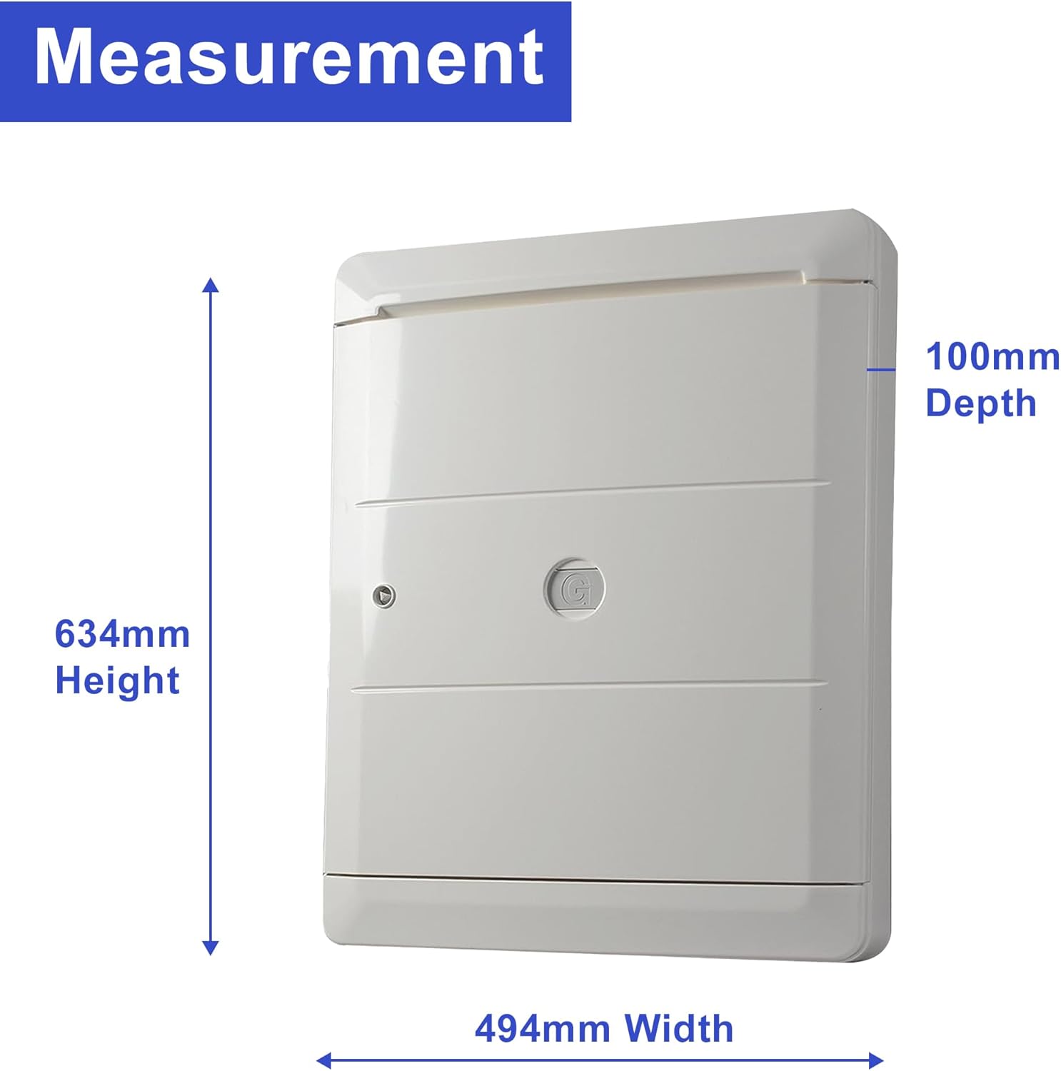 The Overbox dimensions are 634mm height x 494mm width x 100mm depth a and can fit over existing inset meter boxes with overall sizes no bigger than 618mm height x 440mm width x 66mm depth.